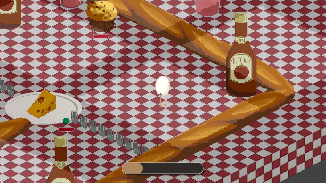 Beat the Pancake Boss in a no-death run. Can you keep your shell together?